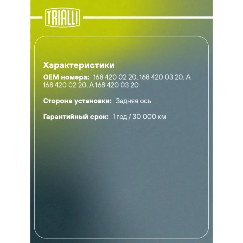 | Гарантийный срок | 1 год / 30 000 км |