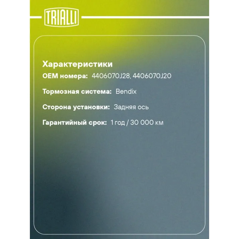 | Гарантийный срок | 1 год / 30 000 км |