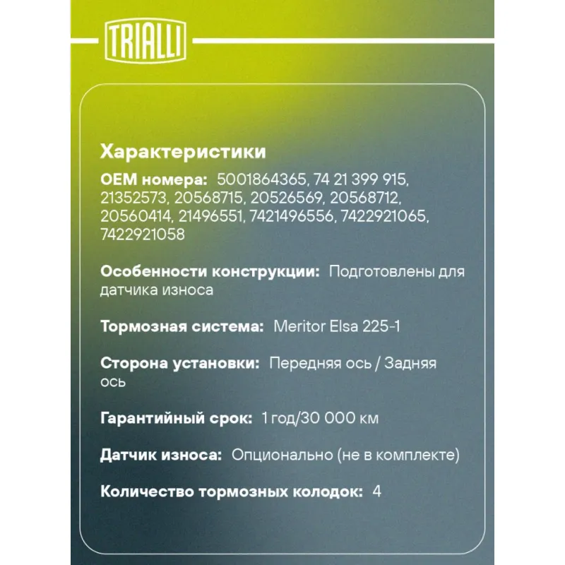 | Датчик износа | Опционально (не в комплекте) |