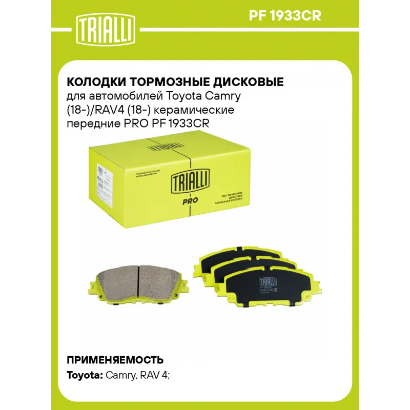 Колодки тормозные дисковые для автомобилей Toyota Camry (18-)/RAV4 (18-) керамические передние PRO Характеристики: Артикул: PF 1933CR OEM номера: 04465-76010, 04465-33480, 04465-0E060, 04465-06150 Особенности конструкции:: Не подготовлены для датчика износа Гарантийный срок: 1 год / 30 000 км Количество на автомобиль: 1 Сторона установки: Передняя ось WVA: 22768 Тормозная система: Akebono Датчик износа: Не предусмотрен Количество тормозных колодок: 4 Сопутствующий товар: Диски тормозные: DF 190323; DF 190324 Ширина, мм: 142,6 Высота, мм: 56 Толщина, мм: 16,5 Материал фрикционной накладки: Ceramic Товарная линейка: PRO Подходит для авто: Toyota Camry (18-), RAV 4 (18-) Для проверки применяемости отправьте VIN автомобиля через вкладку "Есть вопросы о товаре?" Комплектация: Колодка тормозная - 4 шт Гарантия: от 1 года.