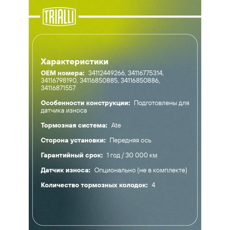 | Датчик износа | Опционально (не в комплекте) |