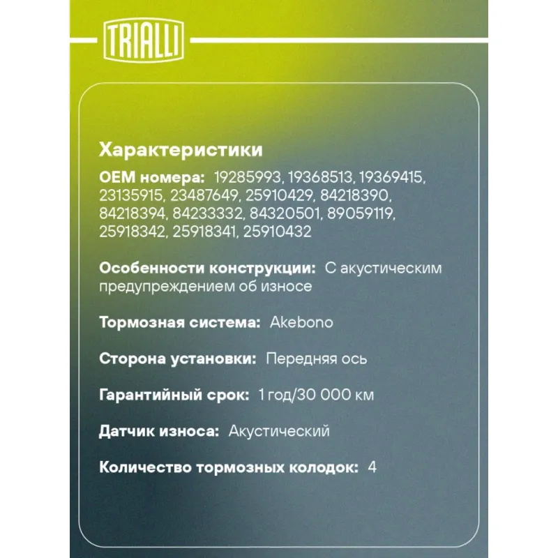 | Особенности конструкции: | С акустическим предупреждением об износе |