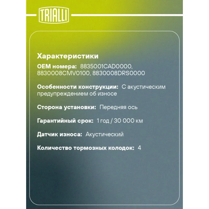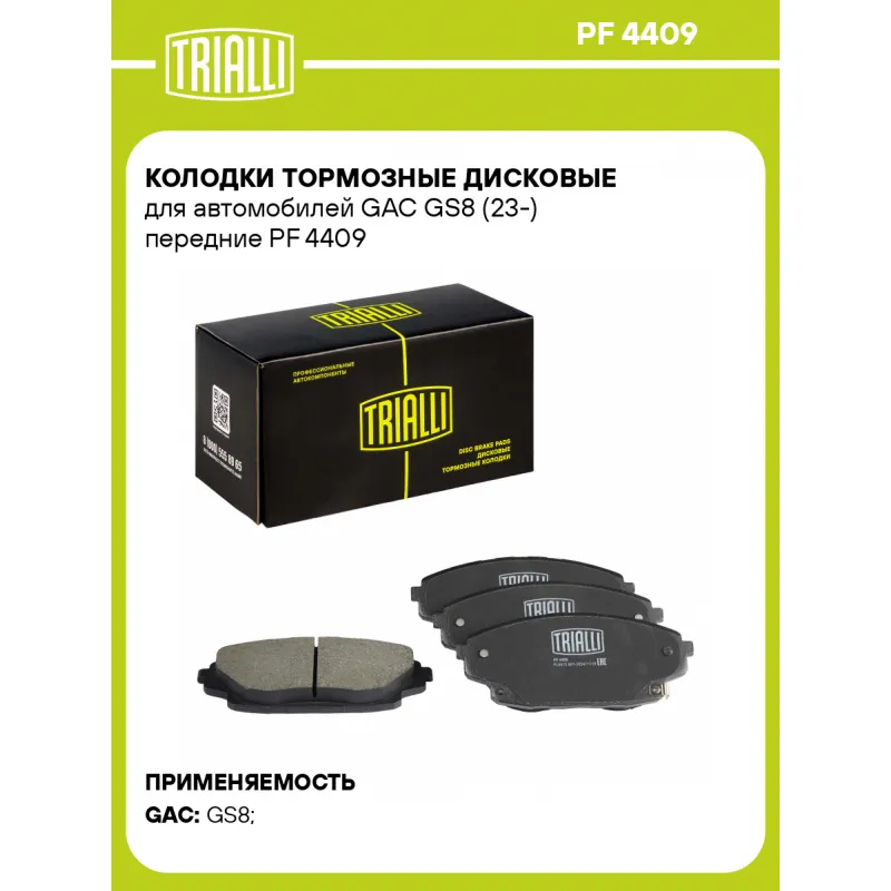 Колодки тормозные дисковые для автомобилей GAC GS8 (23-) передние PF 4409 TRIALLI