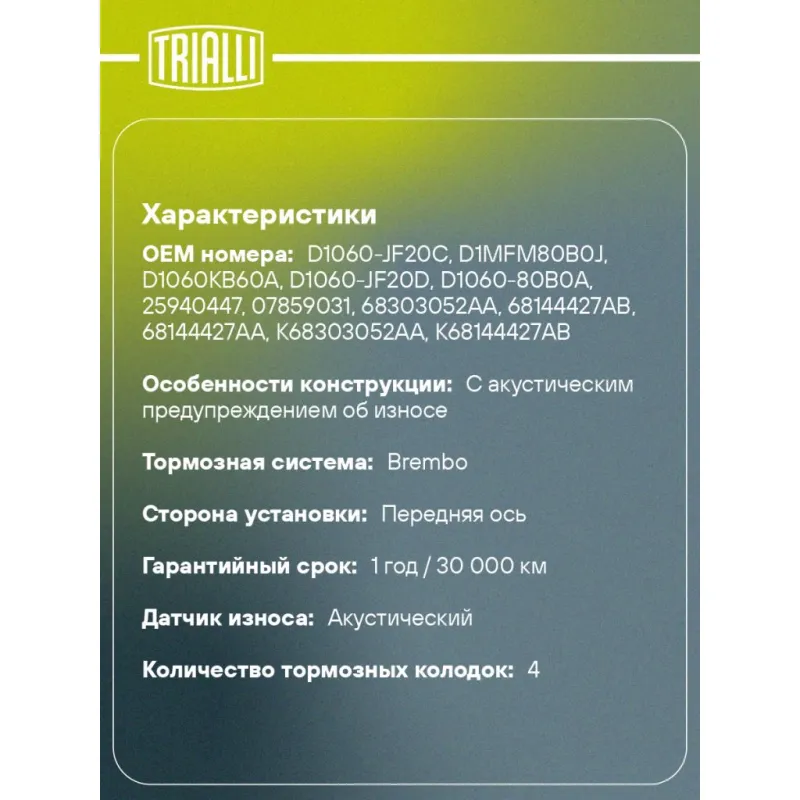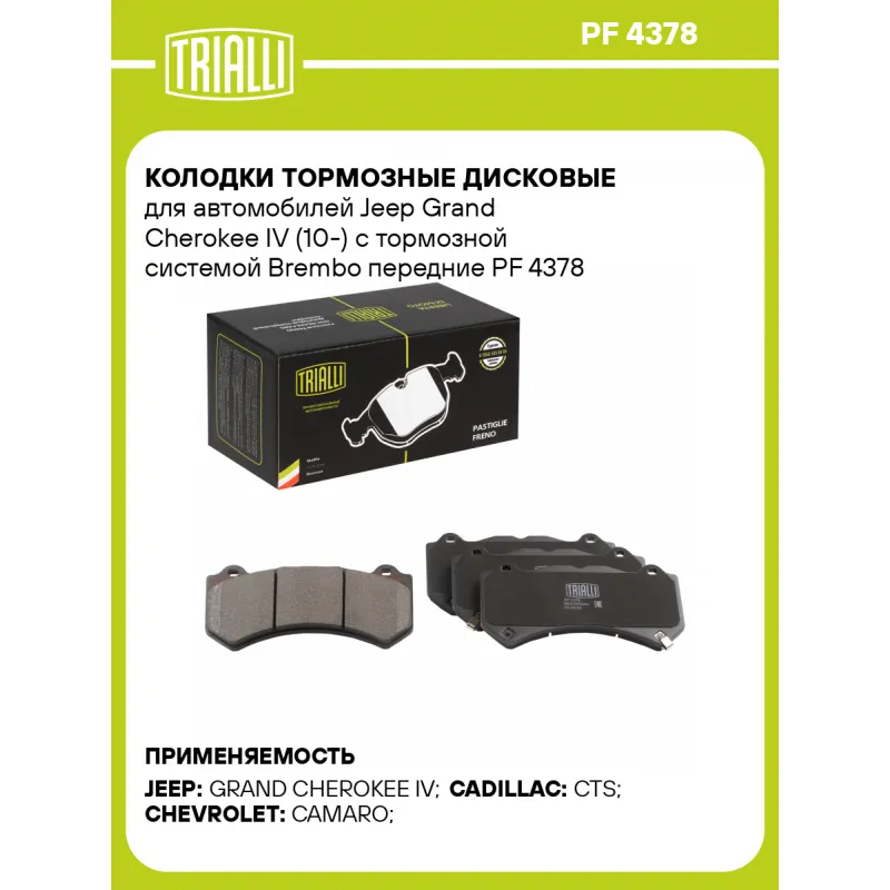 Колодки тормозные дисковые для автомобилей Jeep Grand Cherokee IV (10-) с тормозной системой Brembo передние PF 4378 TRIALLI