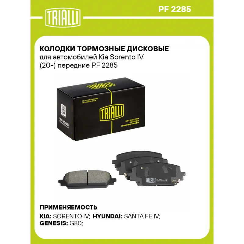 Колодки тормозные дисковые для автомобилей Kia Sorento IV (20-) передние Характеристики: Артикул: PF 2285 OEM номера: 58101P2A70, 58101P2A80, 58101P2A00, 58101T1A00 Особенности конструкции:: С акустическим предупреждением об износе Гарантийный срок: 1 год / 30 000 км Количество на автомобиль: 1 Сторона установки: Передняя ось Датчик износа: Акустический Количество тормозных колодок: 4 Ширина, мм: 154.2 Высота, мм: 63.6 Толщина, мм: 16 Комплектация: Колодка тормозная - 4 шт Гарантия: от 1 года.