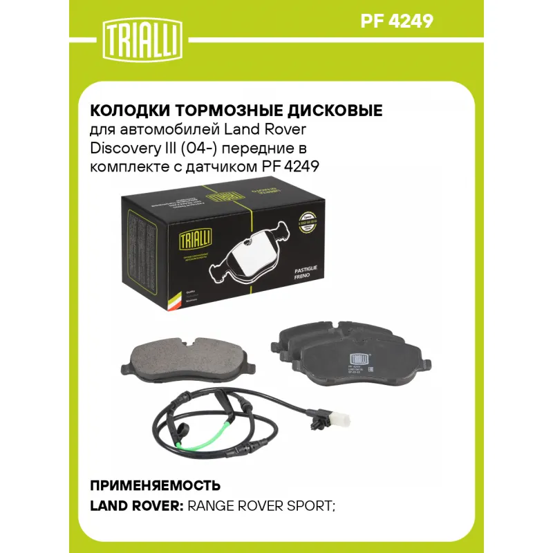 Колодки тормозные дисковые для автомобилей Land Rover Discovery III (04-) передние в комплекте с датчиком Характеристики: Артикул: PF 4249 OEM номера: LR019618, SFP500010, LR134694, SFP5000010 Количество на автомобиль: 1 Сторона установки: Передняя ось Особенности конструкции:: Подготовлены для датчика износа WVA: 24191 Тормозная система: TRW Гарантийный срок: 1 год / 30 000 км Датчик износа: Опционально Количество тормозных колодок: 4 Сопутствующий товар: Диски тормозные: DF 130106 Ширина, мм: 163 Высота, мм: 59 Толщина, мм: 18 Комплектация: Датчик износа - 1 шт Колодка тормозная - 4 шт Гарантия: от 1 года.
