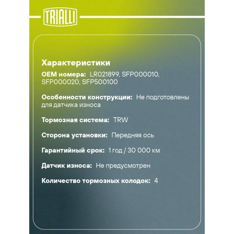 Колодки тормозные дисковые для автомобилей Land Rover Freelander (98-) / Range Rover (02-) 1.8i/2.0TD/2.5i/3.0D передние PF 4251 TRIALLI