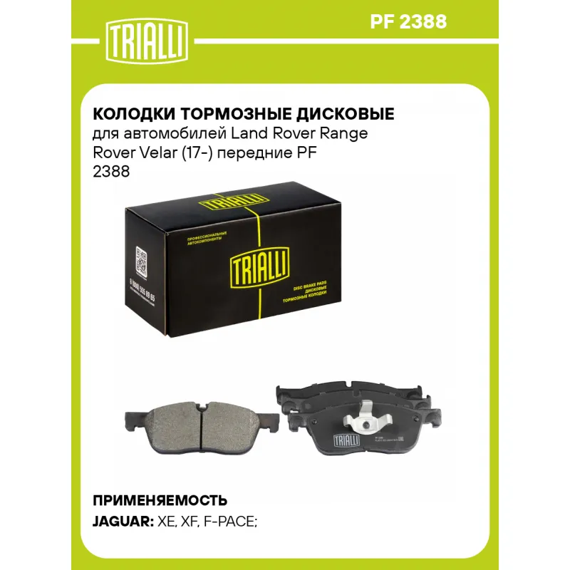 Колодки тормозные дисковые для автомобилей Land Rover Range Rover Velar (17-) передние Характеристики: Артикул: PF 2388 OEM номера: T4N9760, LR090689, LR160438, T4N13434 Особенности конструкции:: Подготовлены для датчика износа Гарантийный срок: 1 год / 30 000 км Количество на автомобиль: 1 Сторона установки: Передняя ось WVA: 22145, 22146 Датчик износа: Опционально (не в комплекте) Количество тормозных колодок: 4 Дополнительная информация: С поршневыми зажимами Ширина, мм: 193.1 Высота, мм: 65 Толщина, мм: 17.3 Толщина 1, мм: 18,3 Толщина 2, мм: 19,3 Комплектация: Колодка тормозная - 4 шт Гарантия: от 1 года.