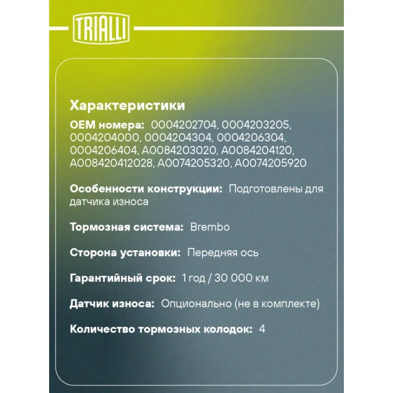 | Датчик износа | Опционально (не в комплекте) |