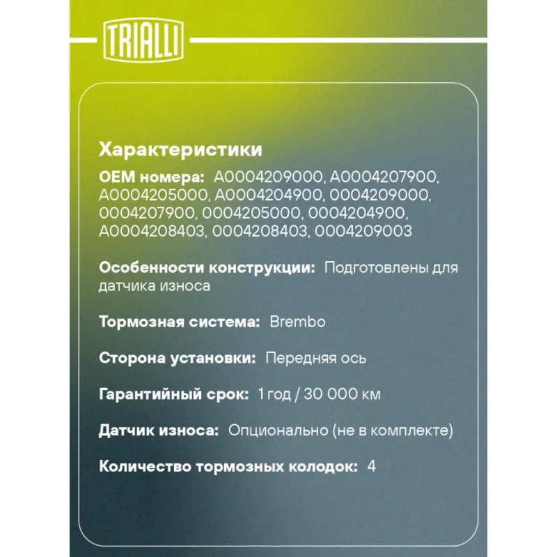 | Особенности конструкции: | Подготовлены для датчика износа |
