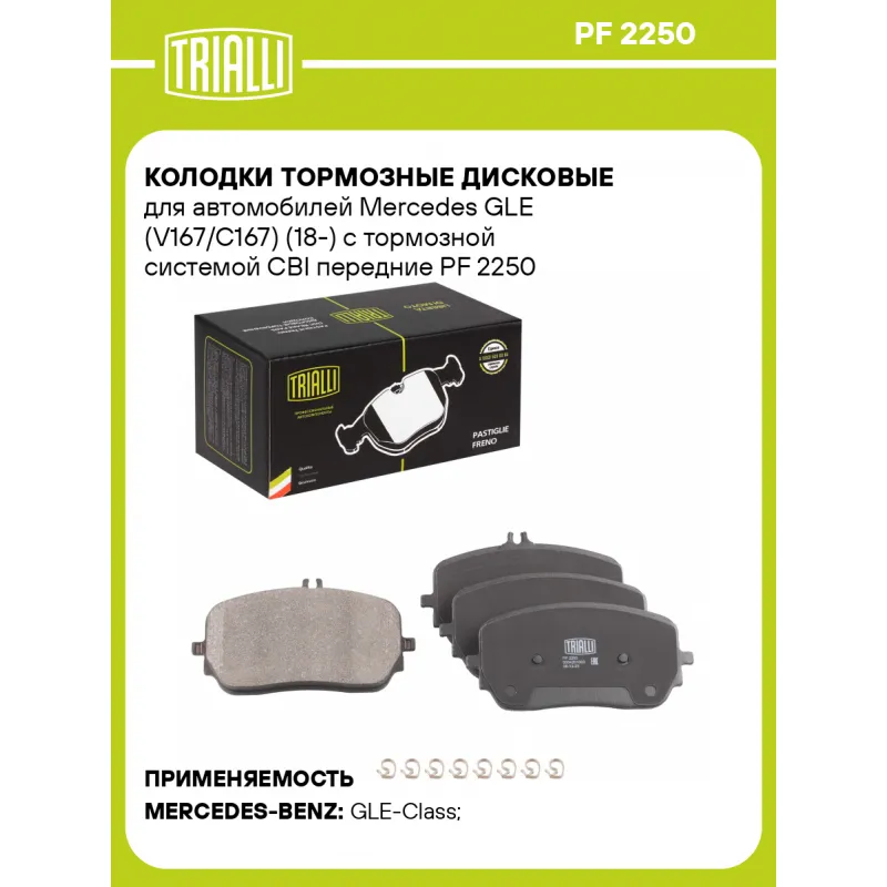 Колодки тормозные дисковые для автомобилей Mercedes GLE (V167/C167) (18-) с тормозной системой CBI передние Характеристики: Артикул: PF 2250 OEM номера: 0004201003, 0004203702, 0004203802, 0004204702, 0004207802, A0004201003, A0004201606, A0004202006, A0004203404, A0004206703, A0004206803, 0004203404, 0004206703, 0004206803, 0004206903, 0004207003, 0004216502, A0004203702, A0004203802, A0004204702, A0004207802, 0004201606, 0004202006 Количество на автомобиль: 1 Сторона установки: Передняя ось Особенности конструкции:: Подготовлены для датчика износа WVA: 22962, 22963 Тормозная система: CBI Датчик износа: Опционально Количество тормозных колодок: 4 Сопутствующий товар: Диски тормозные: DF 190439 Ширина, мм: 170 Высота 1, мм: 83 Высота 2, мм: 92 Толщина, мм: 18 Материал фрикционной накладки: Low-Metallic Комплектация: Колодка тормозная - 4 шт Пружина установочная - 8 шт Гарантия: от 1 года.