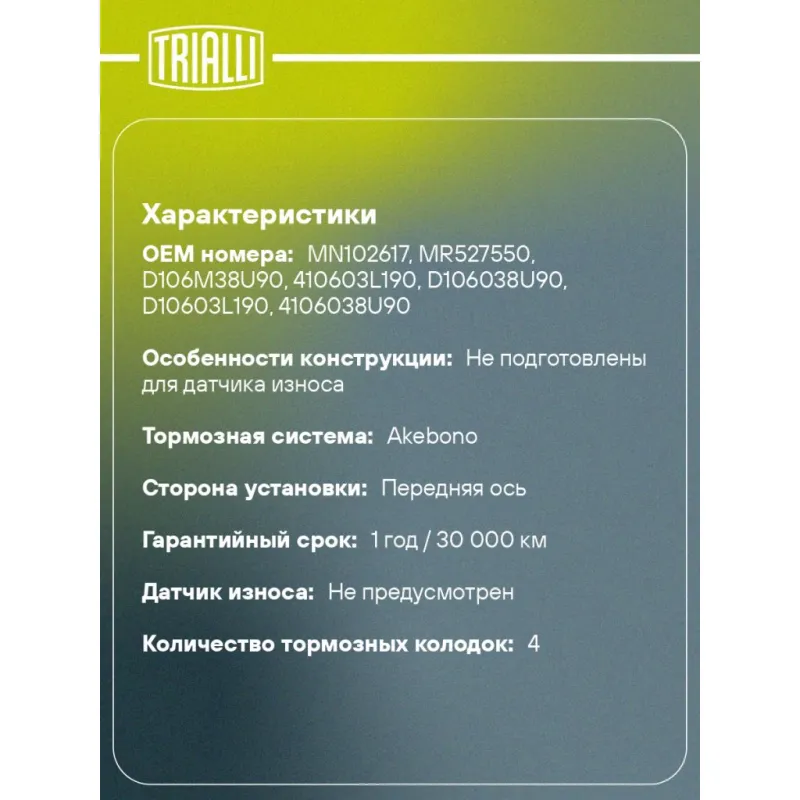 Колодки тормозные дисковые для автомобилей Nissan Maxima (94-) / Mitsubishi L200 (96-) передние PF 1078 TRIALLI