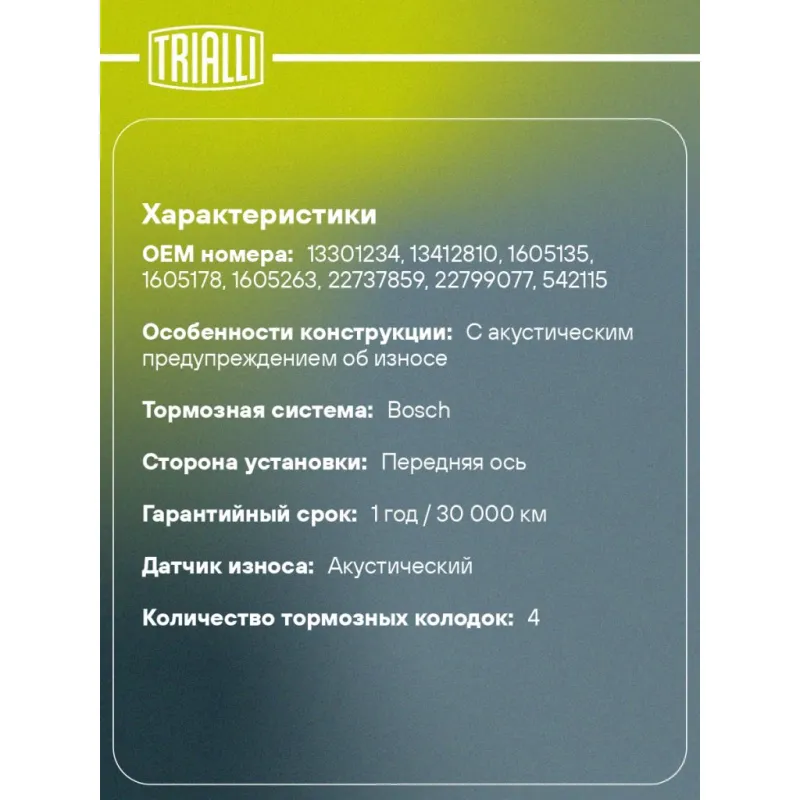 Колодки тормозные дисковые для автомобилей Opel Astra J (10-) / Mokka (13-) / Chevrolet Cruze (09-) керамические передние с колесными дисками 16" PRO Характеристики: Артикул: PF 0516CR OEM номера: 13301234, 13412810, 1605135, 1605178, 1605263, 22737859, 22799077, 542115 Особенности конструкции:: С акустическим предупреждением об износе Гарантийный срок: 1 год / 30 000 км Количество на автомобиль: 1 Сторона установки: Передняя ось Тормозная система: Bosch Датчик износа: Акустический Количество тормозных колодок: 4 Ширина, мм: 148 Высота, мм: 61,2 Толщина, мм: 19 Материал фрикционной накладки: Ceramic Товарная линейка: PRO Комплектация: Колодка тормозная - 4 шт Гарантия: от 1 года.