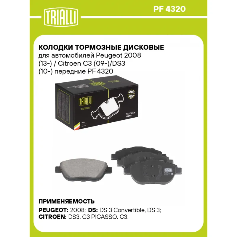Колодки тормозные дисковые для автомобилей Peugeot 2008 (13-) / Citroen C3 (09-)/DS3 (10-) передние Характеристики: Артикул: PF 4320 OEM номера: 1607083180, 4254.31, 161140580, 1611837880, 1613192580, 1617275680, 1617293780, 1629038380, 1611140580 Количество на автомобиль: 1 Сторона установки: Передняя ось Особенности конструкции:: Не подготовлены для датчика износа WVA: 24883 Тормозная система: Bosch Гарантийный срок: 1 год / 30 000 км Датчик износа: Не предусмотрен Количество тормозных колодок: 4 Ширина, мм: 137 Высота, мм: 59 Толщина, мм: 17 Материал фрикционной накладки: Low-Metallic Комплектация: Колодка тормозная - 4 шт Гарантия: от 1 года.