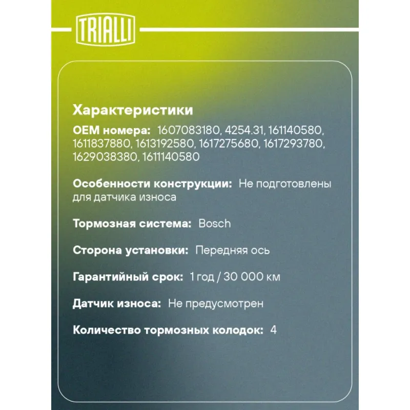 | Датчик износа | Не предусмотрен |