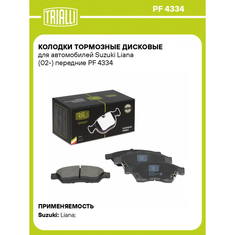 Колодки тормозные дисковые для автомобилей Suzuki Liana (02-) передние Характеристики: Артикул: PF 4334 OEM номера: 5581054G30, 5581054G50, 5581054G61, 5581054GA0, 5581054G00, 55810-54G40, 55810-54G51, 55810-54G60, 5581054G10 Количество на автомобиль: 1 Сторона установки: Передняя ось Особенности конструкции:: С акустическим предупреждением об износе Тормозная система: NBK Гарантийный срок: 1 год / 30 000 км Датчик износа: Акустический Количество тормозных колодок: 4 Сопутствующий товар: Диски тормозные: DF 150013 Ширина, мм: 136,5 Высота, мм: 52,6 Толщина, мм: 16,2 Материал фрикционной накладки: Low-Metallic Подходит для авто: Suzuki Liana (02-), Liana (02-) Для проверки применяемости отправьте VIN автомобиля через вкладку "Есть вопросы о товаре?" Комплектация: Колодка тормозная - 4 шт Гарантия: от 1 года.