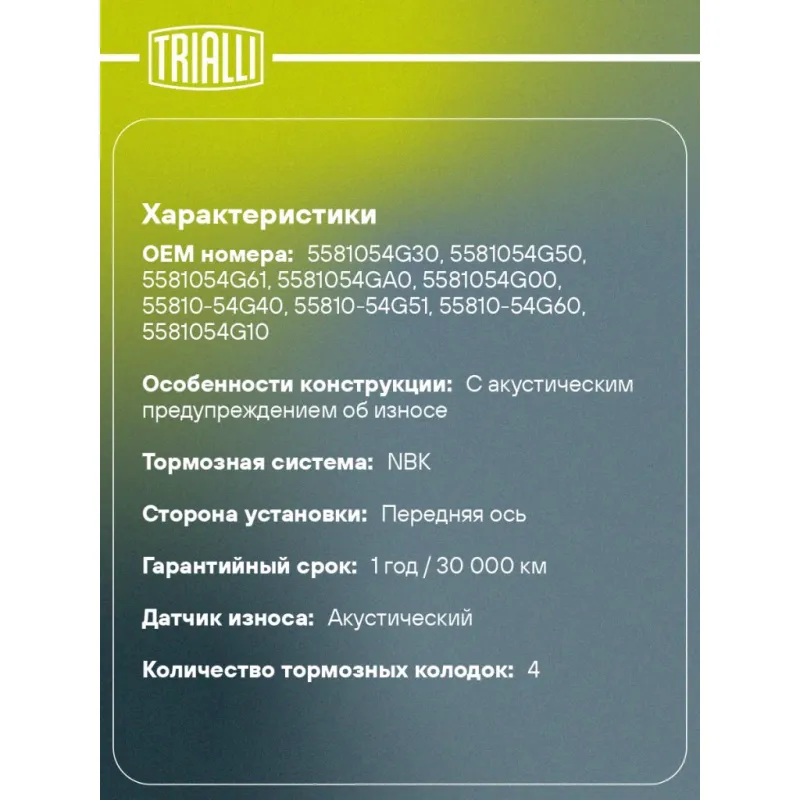 | Особенности конструкции: | С акустическим предупреждением об износе |