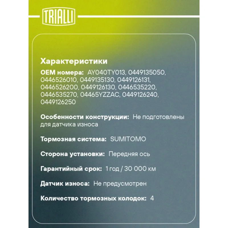| Датчик износа | Не предусмотрен |