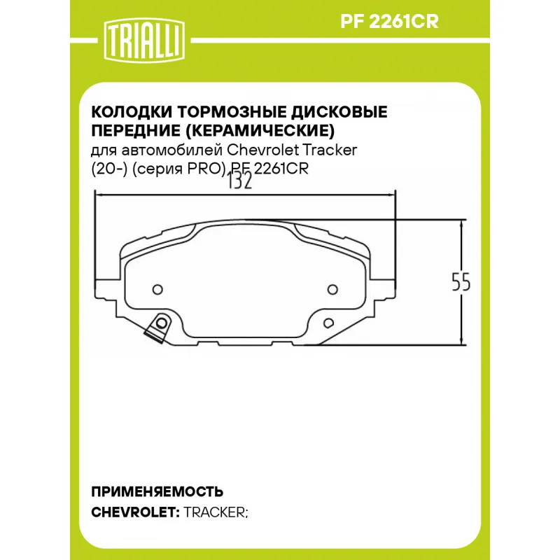 Колодки тормозные дисковые передние (керамические) для автомобилей Chevrolet Tracker (20-) (серия PRO) PF 2261CR TRIALLI