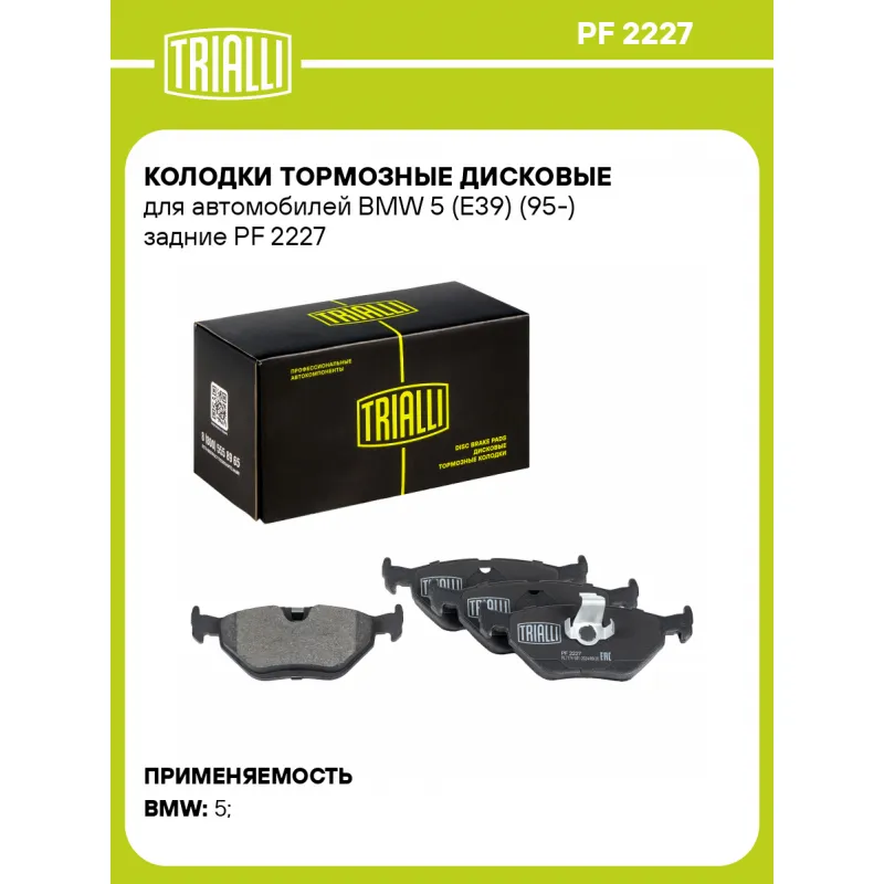 Колодки тормозные дисковые для автомобилей BMW 5 (E39) (95-) задние PF 2227 TRIALLI