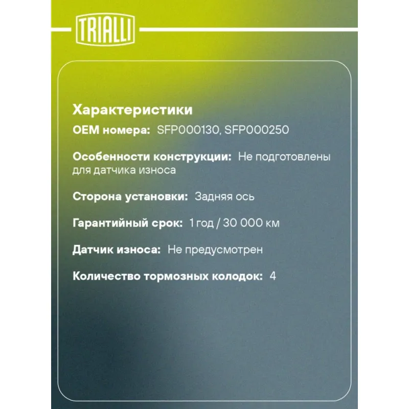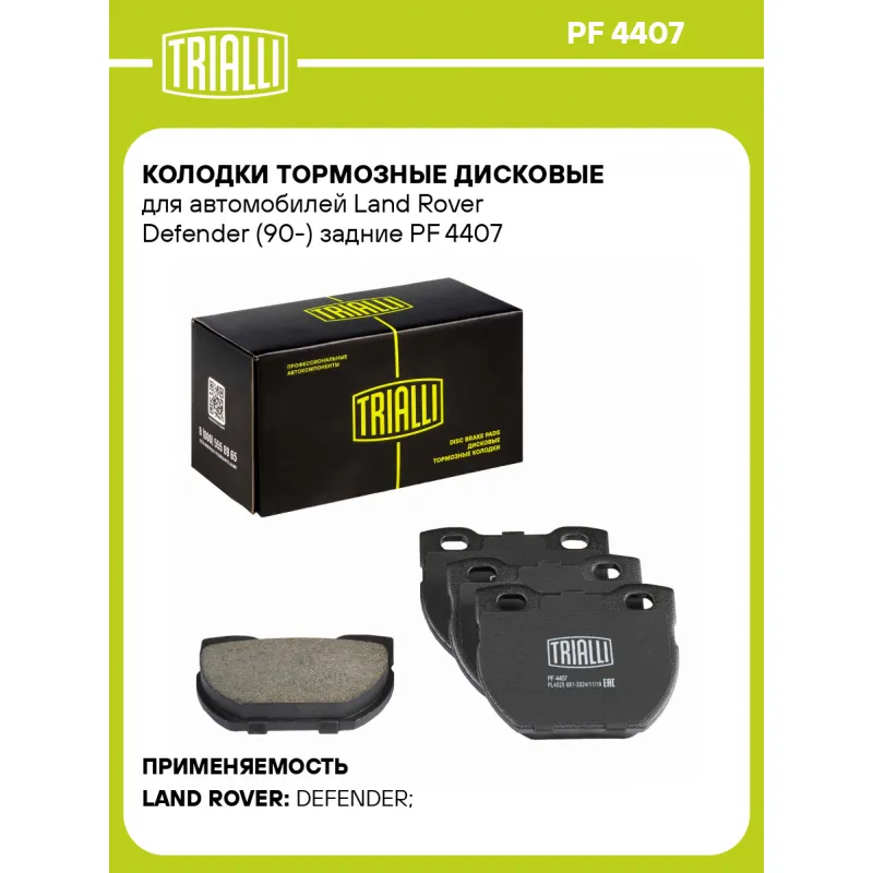 Колодки тормозные дисковые для автомобилей Land Rover Defender (90-) задние Характеристики: Артикул: PF 4407 OEM номера: SFP000130, SFP000250 Ширина, мм: 88.2 Толщина, мм: 13.9 Высота, мм: 68.8 Количество на автомобиль: 1 Сторона установки: Задняя ось Особенности конструкции:: Не подготовлены для датчика износа Гарантийный срок: 1 год / 30 000 км Датчик износа: Не предусмотрен Количество тормозных колодок: 4 Комплектация: Колодка тормозная - 4 шт Гарантия: от 1 года.