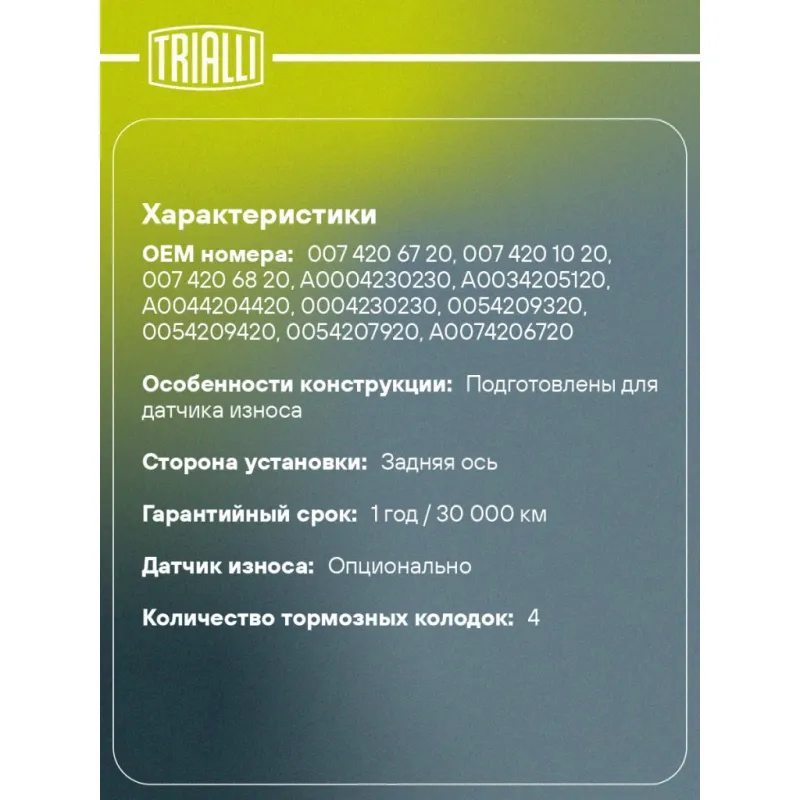 | Гарантийный срок | 1 год / 30 000 км |