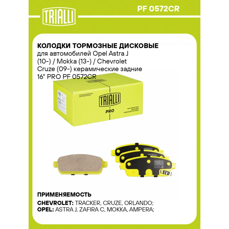 Колодки тормозные дисковые для автомобилей Opel Astra J (10-) / Mokka (13-) / Chevrolet Cruze (09-) керамические задние 16" PRO Характеристики: Артикул: PF 0572CR OEM номера: 13300867, 13300868, 13319293, 13319294, 13404405, 13411380, 13411383, 13417473, 13473427, 13473428, 13473429, 16 05 140, 16 05 168, 16 05 170, 16 05 176, 16 05 180, 16 05 262, 16 05 294, 16 05 296, 1605295, 542039, 542040, 95516192 Особенности конструкции:: С акустическим предупреждением об износе Гарантийный срок: 1 год / 30 000 км Количество на автомобиль: 1 Сторона установки: Задняя ось Тормозная система: Bosch Датчик износа: Акустический Количество тормозных колодок: 4 Ширина, мм: 116,8 Высота, мм: 42,8 Толщина, мм: 16 Материал фрикционной накладки: Ceramic Товарная линейка: PRO Комплектация: Колодка тормозная - 4 шт Гарантия: от 1 года.