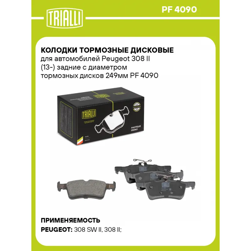 Колодки тормозные дисковые для автомобилей Peugeot 308 II (13-) задние с диаметром тормозных дисков 249мм Характеристики: Артикул: PF 4090 OEM номера: 1610814180 Количество на автомобиль: 1 Сторона установки: Задняя ось Особенности конструкции:: Не подготовлены для датчика износа WVA: 25841, 25842 Тормозная система: Ate Гарантийный срок: 1 год / 30 000 км Датчик износа: Не предусмотрен Количество тормозных колодок: 4 Ширина, мм: 123 Высота 1, мм: 41,2 Высота 2, мм: 46,2 Толщина, мм: 16,1 Комплектация: Колодка тормозная - 4 шт Гарантия: от 1 года.