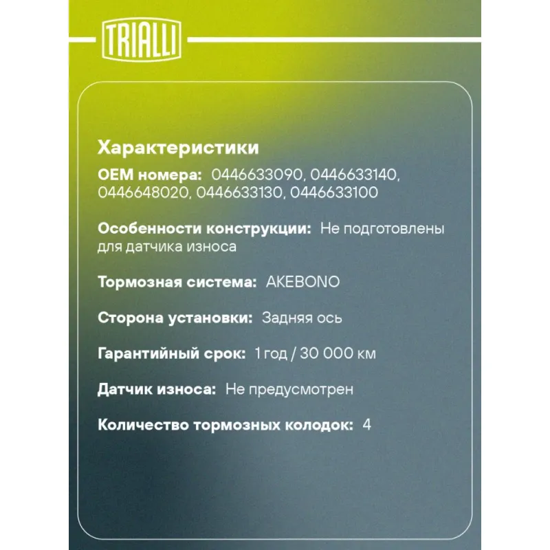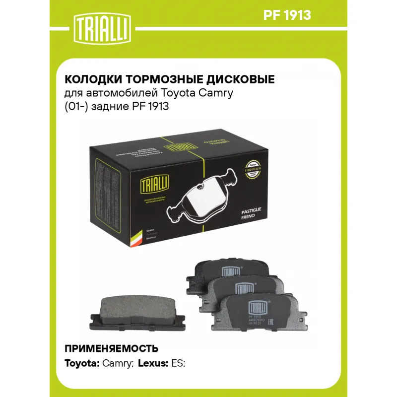 Колодки тормозные дисковые для автомобилей Toyota Camry (01-) задние PF 1913 TRIALLI