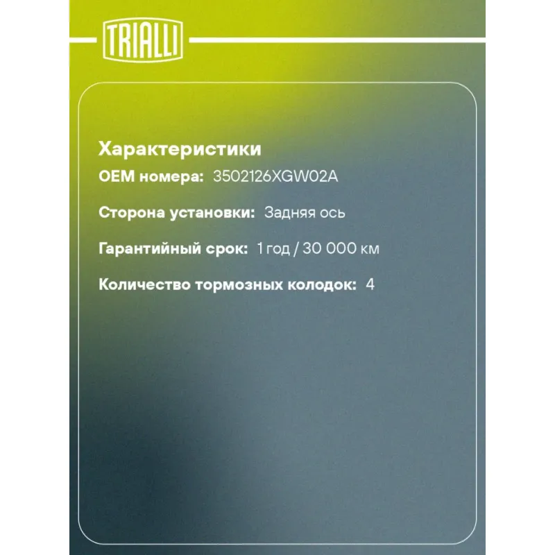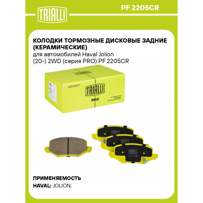 Колодки тормозные дисковые задние (керамические) для автомобилей Haval Jolion (20-) 2WD (серия PRO) Характеристики: Артикул: PF 2205CR OEM номера: 3502126XGW02A Гарантийный срок: 1 год / 30 000 км Количество на автомобиль: 1 Сторона установки: Задняя ось Количество тормозных колодок: 4 Ширина, мм: 105,4 Высота, мм: 44,3 Толщина, мм: 14,7 Комплектация: Колодка тормозная - 4 шт Гарантия: от 1 года.