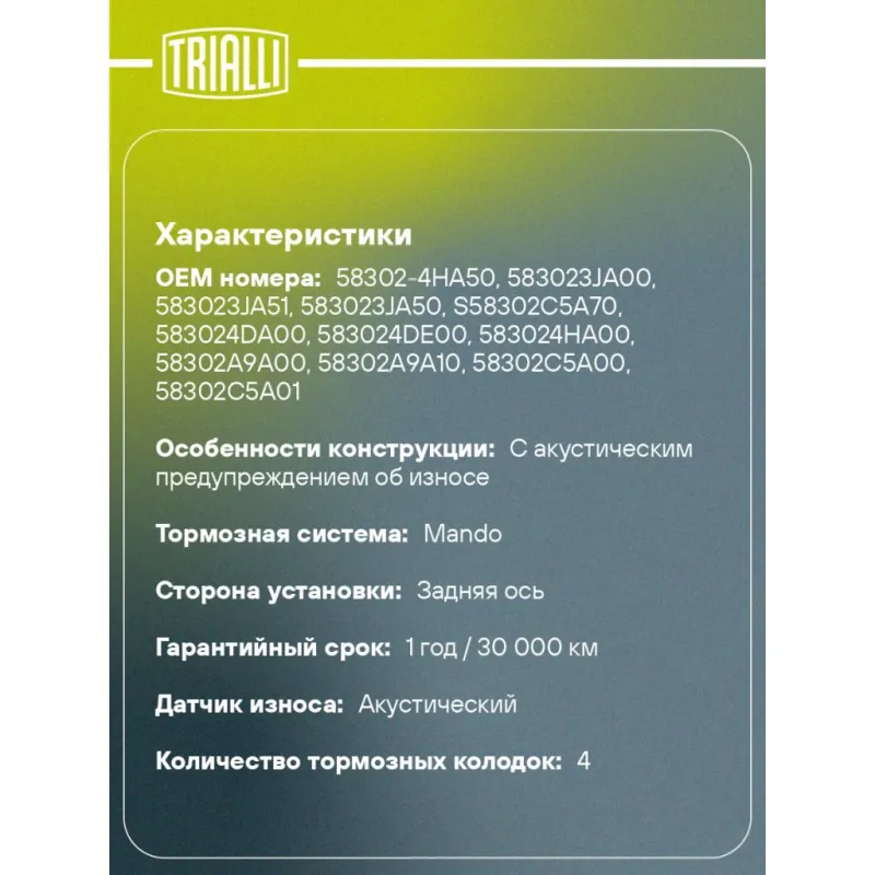 | Гарантийный срок | 1 год / 30 000 км |