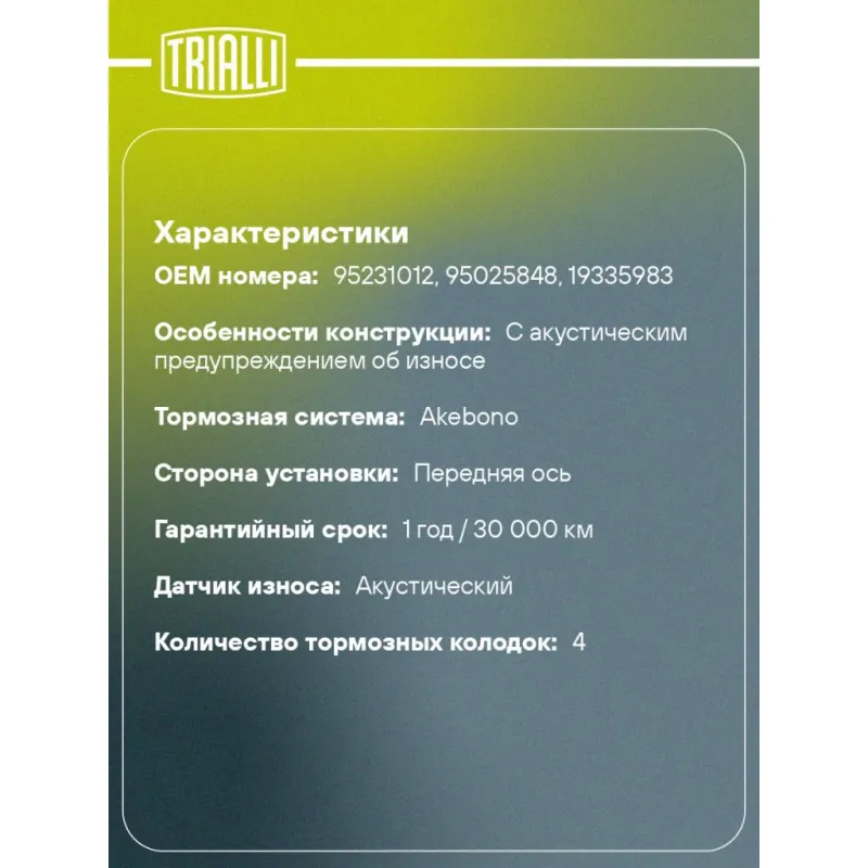| Особенности конструкции: | С акустическим предупреждением об износе |