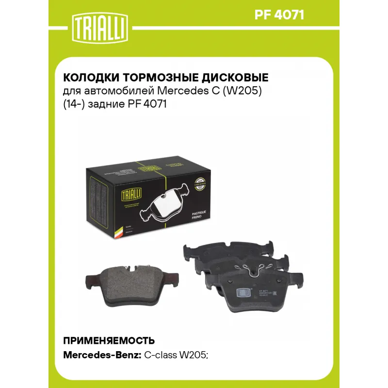 Колодки тормозные дисковые для автомобилей Mercedes C (W205) (14-) задние PF 4071 TRIALLI