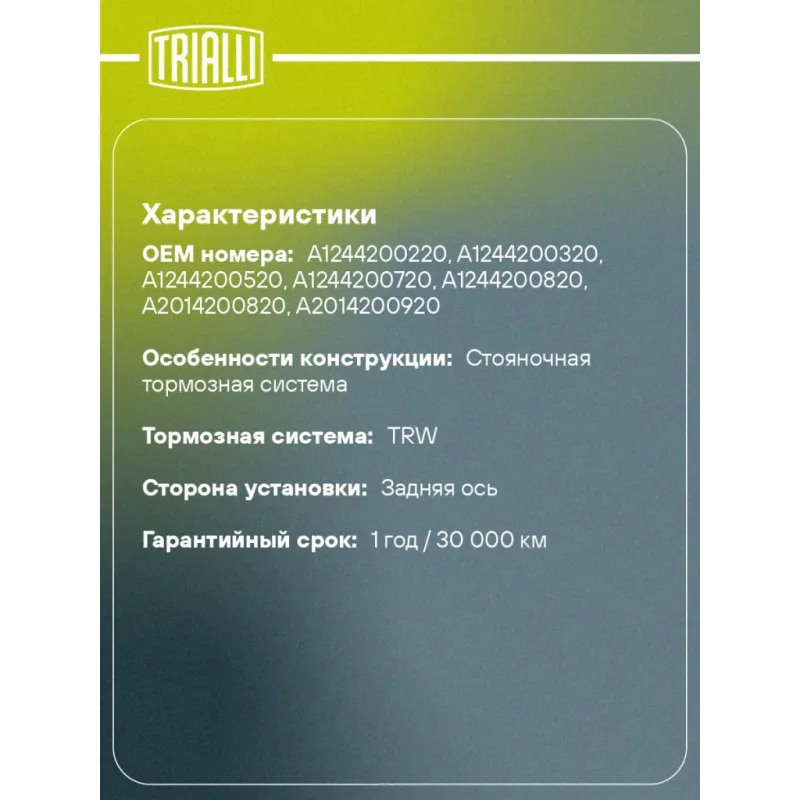 Гарантийный срок 1 год / 30 000 км