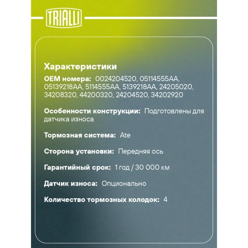 | Датчик износа | Опционально |