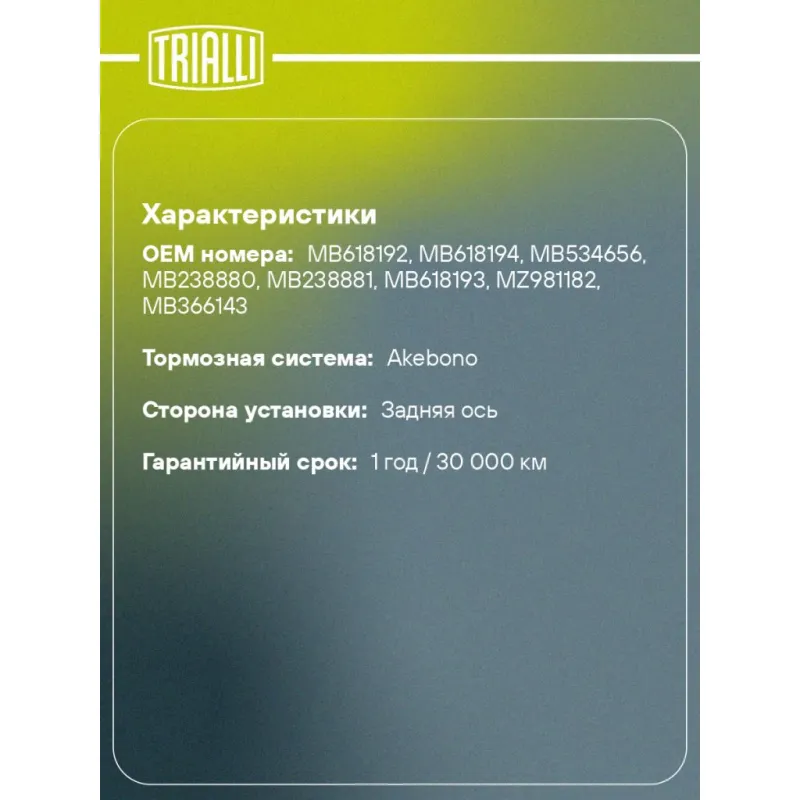 Колодки тормозные для автомобилей Mitsubishi Galant (87-) барабанные 203x37 для тормозной системы Akebono Характеристики: Артикул: GF 1111 OEM номера: MB618192, MB618194, MB534656, MB238880, MB238881, MB618193, MZ981182, MB366143 Гарантийный срок: 1 год / 30 000 км Сторона установки: Задняя ось Количество на автомобиль: 1 Ширина, мм: 37 Диаметр, мм: 203 Тормозная система: Akebono Товарная линейка: BLACK Подходит для авто: Mitsubishi Galant (87-), Carisma (95-), Colt (92-), Galant (87-), Carisma (95-) Для проверки применяемости отправьте VIN автомобиля через вкладку "Есть вопросы о товаре?" Комплектация: Колодка тормозная - 4 шт Гарантия: от 1 года.