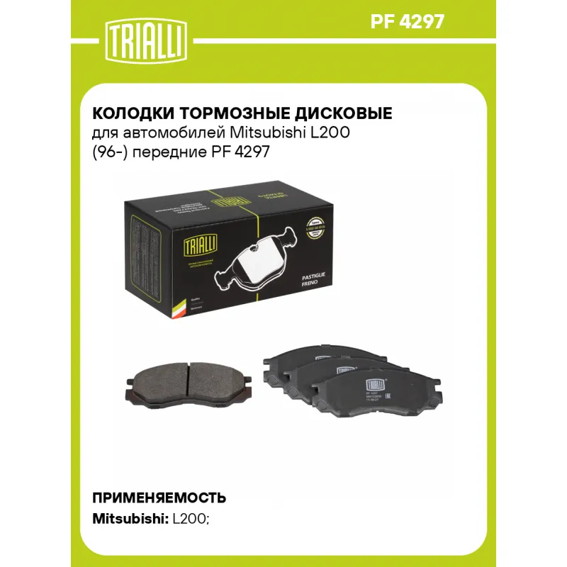 Колодки тормозные дисковые для автомобилей Mitsubishi L200 (96-) передние Характеристики: Артикул: PF 4297 OEM номера: MN102609, MN102616, MR205256, MR205257, MR389547, MR389550, MR510680, MZ690338, X3511009, MZ690036, MZ690016, DBP511119, AY040MT008 Количество на автомобиль: 1 Сторона установки: Передняя ось Особенности конструкции:: Не подготовлены для датчика износа WVA: 23290 Тормозная система: Akebono Гарантийный срок: 1 год / 30 000 км Датчик износа: Не предусмотрен Количество тормозных колодок: 4 Сопутствующий товар: Диски тормозные: DF 117403 Ширина, мм: 138 Высота, мм: 55 Толщина, мм: 16 Подходит для авто: Mitsubishi L200 (96-), L200 (96-), L200 (96-) Для проверки применяемости отправьте VIN автомобиля через вкладку "Есть вопросы о товаре?" Комплектация: Колодка тормозная - 4 шт Гарантия: от 1 года.