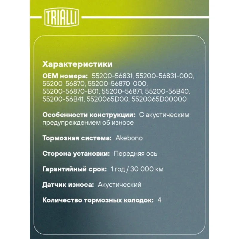 | Особенности конструкции: | С акустическим предупреждением об износе |