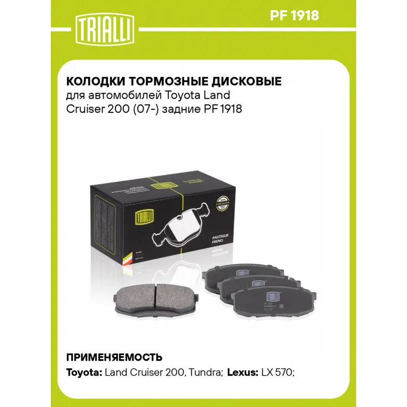 Колодки тормозные дисковые для автомобилей Toyota Land Cruiser 200 (07-) задние Характеристики: Артикул: PF 1918 OEM номера: 0446660120, 044660C010, 0446660160 Количество на автомобиль: 1 Сторона установки: задняя ось Особенности конструкции:: Не подготовлены для датчика износа Тормозная система: ADVICS Гарантийный срок: 1 год / 30 000 км Датчик износа: Не предусмотрен Количество тормозных колодок: 4 Сопутствующий товар: Диски тормозные: DF 190608 Ширина, мм: 116,2 Высота, мм: 44,7 Толщина, мм: 17,3 Материал фрикционной накладки: Low-Metallic Сопутствующий товар: Суппорты тормозные: CF 190601; CF 190602; CF 190663; CF 190664 Подходит для авто: Toyota Land Cruiser 200 (07-), Tundra (06-) Lexus LX 570 (07-) Для проверки применяемости отправьте VIN автомобиля через вкладку "Есть вопросы о товаре?" Комплектация: Колодка тормозная - 4 шт Гарантия: от 1 года.