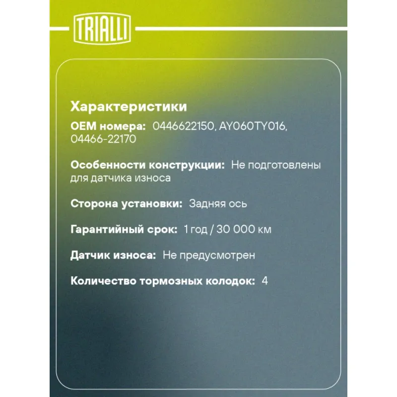 | Датчик износа | Не предусмотрен |