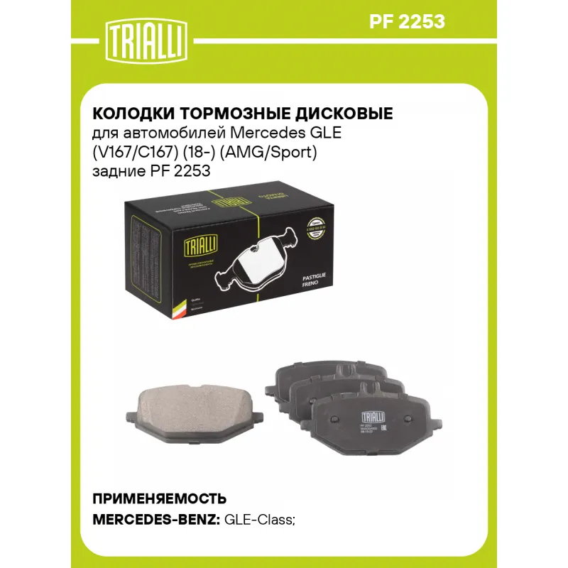 Колодки тормозные дисковые для автомобилей Mercedes GLE (V167/C167) (18-) (AMG/Sport) задние Характеристики: Артикул: PF 2253 OEM номера: 0004204002, 0004204102, A0004202106, A0004204002, A0004204102, 0004203805, 0004205102, 0004207303, 4654204101, A0004205102, A0004207303 Количество на автомобиль: 1 Сторона установки: Задняя ось Особенности конструкции:: Подготовлены для датчика износа WVA: 22723, 22724 Тормозная система: TRW Датчик износа: Опционально Количество тормозных колодок: 4 Ширина, мм: 132 Высота 1, мм: 60 Высота 2, мм: 70 Толщина, мм: 19 Материал фрикционной накладки: Low-Metallic Комплектация: Колодка тормозная - 4 шт Гарантия: от 1 года.