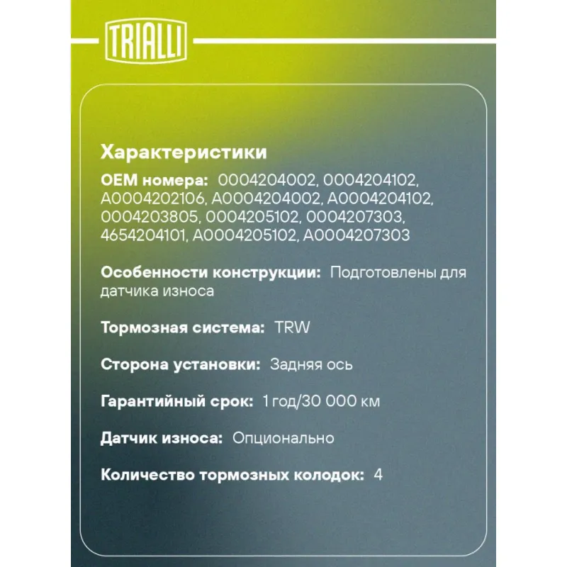 | Датчик износа | Опционально |
