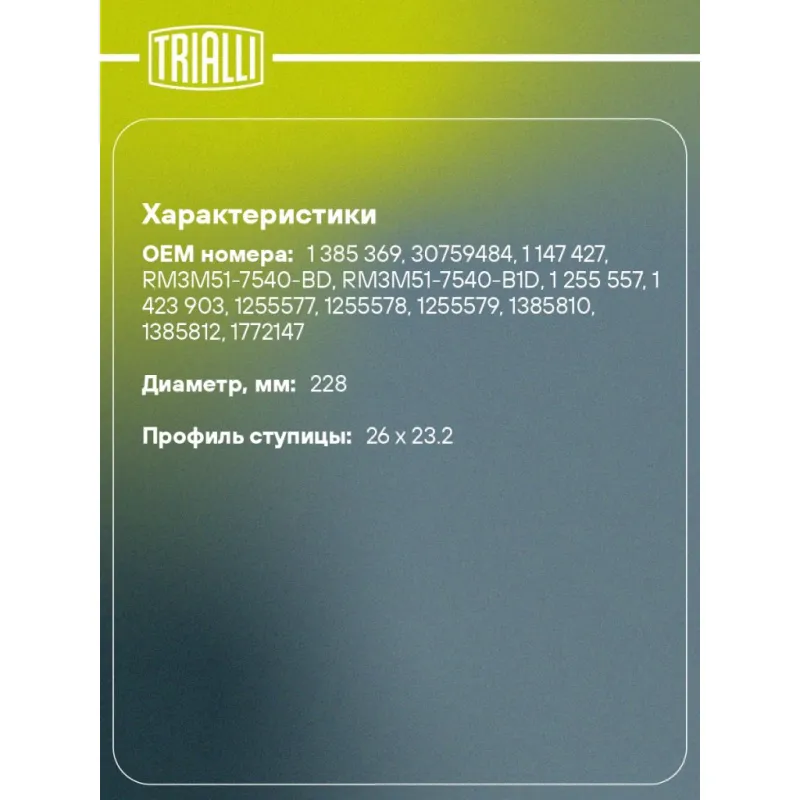 | Диаметр, мм | 228 |