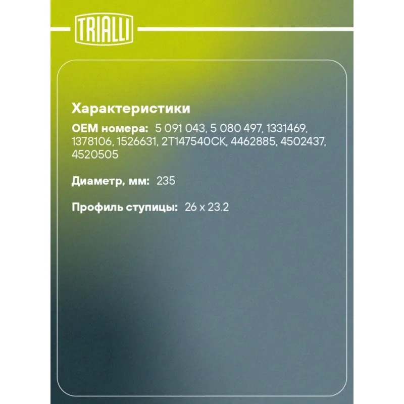| Сопутствующий товар: Нажимные диски сцепления | FS 1010 |