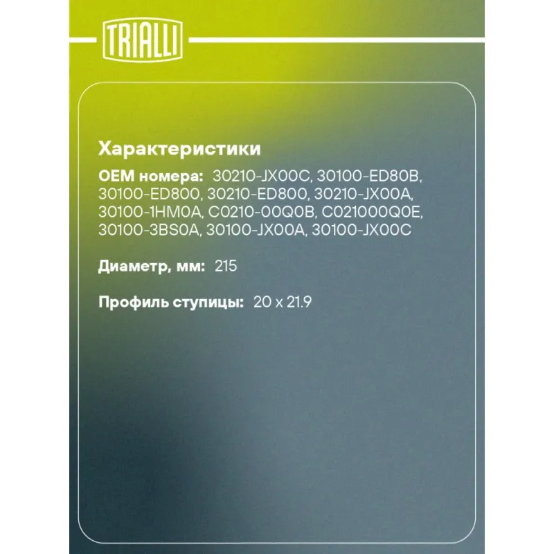 | Диаметр, мм | 215 |