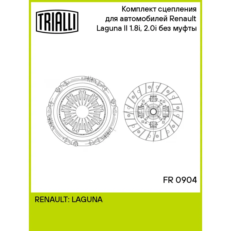 Комплект сцепления без муфты для автомобилей Renault Laguna II (01-) 1.8i/2.0i Характеристики: Артикул: FR 0904 OEM номера: 8200028645, 7701472771, 7701473674, 7701474658, 7701475387, 7701478113, 7701478559, 8200003196, 8200003198 Профиль ступицы: 20.1 x 21.8 Число зубцов, шт.: 26 Диаметр, мм: 215 Гарантийный срок: 2 года/60 000 км Количество на автомобиль: 1 Товарная линейка: BLACK Комплектация: Диск сцепления ведомый - 1 шт Диск сцепления нажимной - 1 шт Гарантия: от 1 года.