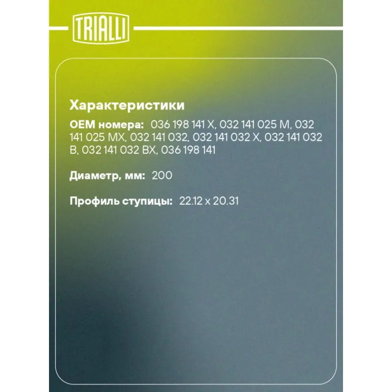 | Профиль ступицы | 22.12x20.31 |