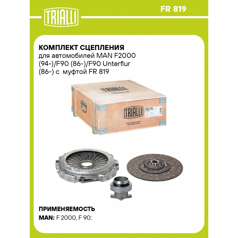 Комплект сцепления для автомобилей MAN F2000 (94-)/F90 (86-)/F90 Unterflur (86-) с муфтой Характеристики: Артикул: FR 819 OEM номера: 81.30005-9012, 81.30005-9021, VA.30000.9434, 81.30005-9020, 81.30005-9029, 81.30005-9018, 81.30005-9013 Гарантийный срок: 12 месяцев без ограничения по пробегу Количество на автомобиль: 1 Диаметр, мм: 430 Число зубцов, шт.: 10 Профиль ступицы: 41 x 50 Комплектация (кол-во деталей, описание): FD 402, FS 1202, CT 0701 Сопутствующий товар: Ведомые диски сцепления: FD 402 Сопутствующий товар: Нажимные диски сцепления: FS 1202 Сопутствующий товар: Муфты сцепления: CT 0701 Товарная линейка: BLACK Двигатель: E 2866 DF 01, D 2866 LF21, D 2866 LF20, D 2866 LF/290, D 2866 LF 330, D 2866 LXF, D 2866 LUL 330, D 2866 KUL, D 2866 LF03, D 2866 LF05 Особенности конструкции: Тип транспортного средства: E15 / F01,02,03,04,05,06,07,08,09,10,13,14,16 / T31,32,33,34,39,40,42,48 / U01,03,05,11,13,16 Комплектация: Диск сцепления ведомый - 1 шт Диск сцепления нажимной - 1 шт Муфта выключения сцепления в сборе - 1 шт Гарантия: от 1 года.