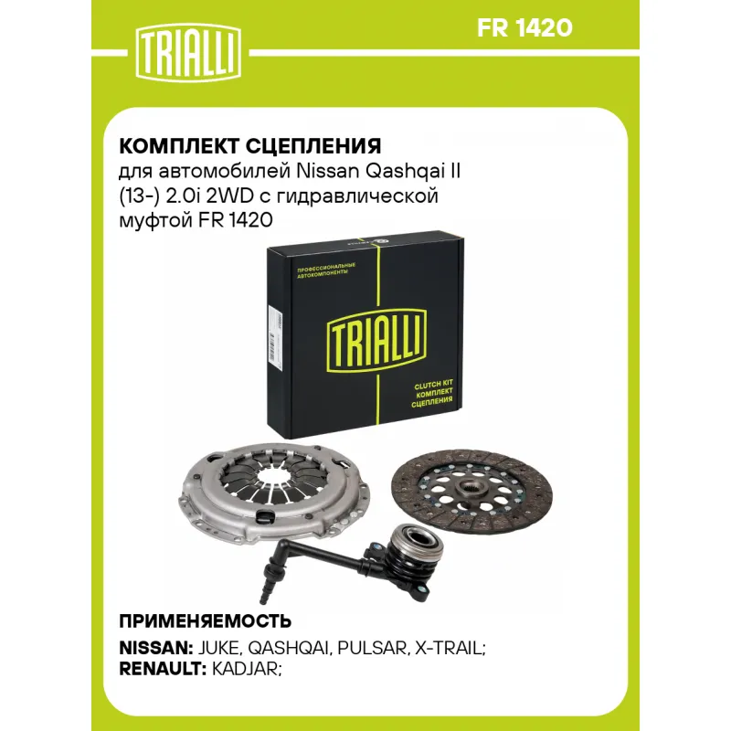 Комплект сцепления для автомобилей Nissan Qashqai II (13-) 2.0i 2WD с гидравлической муфтой FR 1420 TRIALLI