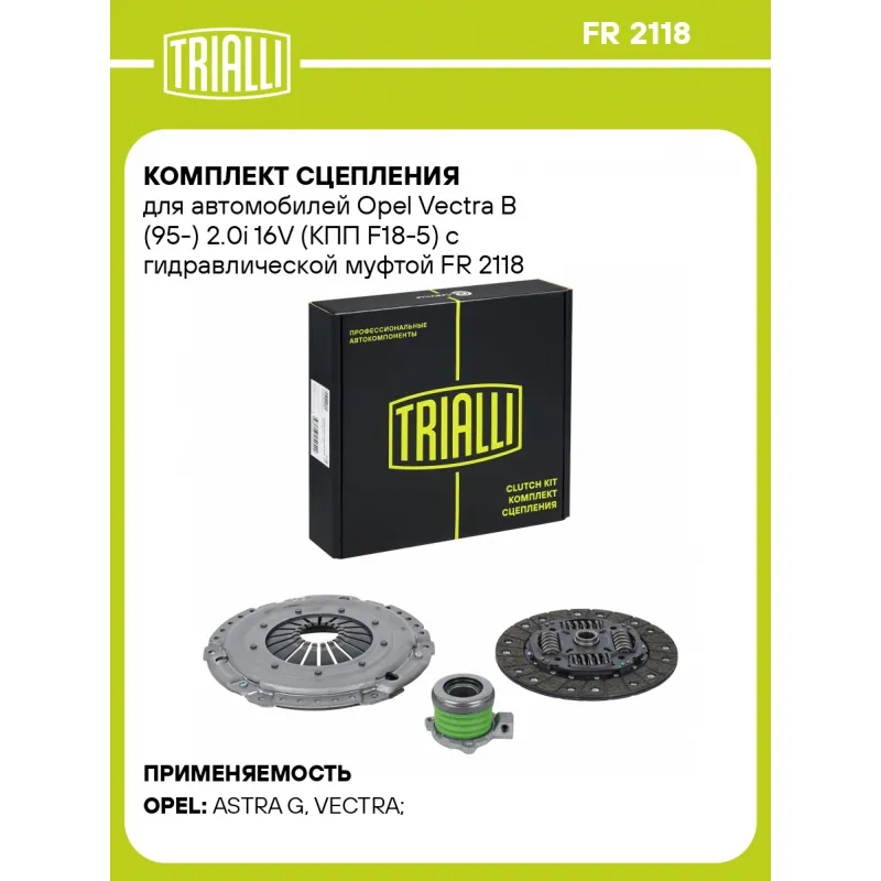 Комплект сцепления для автомобилей Opel Vectra B (95-) 2.0i 16V (КПП F18-5) с гидравлической муфтой FR 2118 TRIALLI